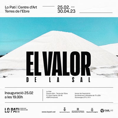 El Valor de la Sal és una exposición que es podrà veure a Lo Pati Centre d’Art de les Terres de l’Ebre del 25 de febrer al 30 d’abril. La mostra recull el punt de vista de vuit artistes nacionals, internacionals i de molt diverses generacions, sobre la importància dels salobrars, tant des del punt de vista antropològic i cultural, com en la generació d’hàbitats de gran biodiversitat.