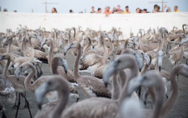 Más de 200 voluntarios participaron el domingo 24 por la mañana en el anillamiento de 400 polluelos de flamenco del Parque Natural ...