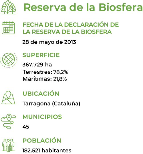 En poco más de 30 kilómetros, el territorio pasa del nivel del mar y de los sistemas dunares propios del delta del Ebro a relieves característicos de 1.500 metros de altitud en el macizo de El Port. Esta variabilidad de paisajes induce a una reveladora cuota de diversidad. El río Ebro vertebra la Reserva tanto desde el punto de vista simbólico como ambiental y socioeconómico.