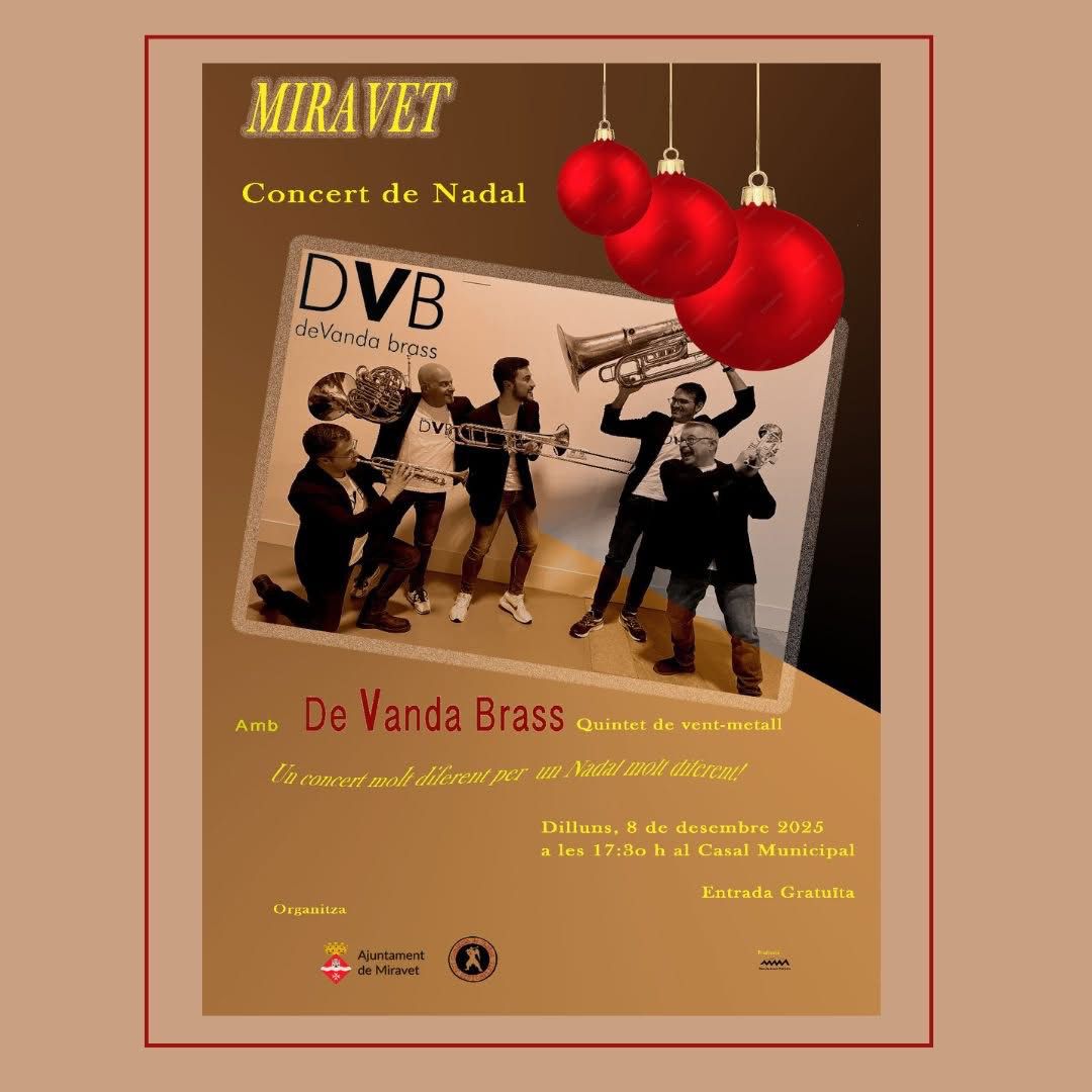 Concert de Nadal a Miravet! El pròxim dilluns 8 de desembre a les 17:30 h el Quintet DeVanda Brass oferirà un animat concert de Nadal al Casal Municipal de Miravet. Amb una