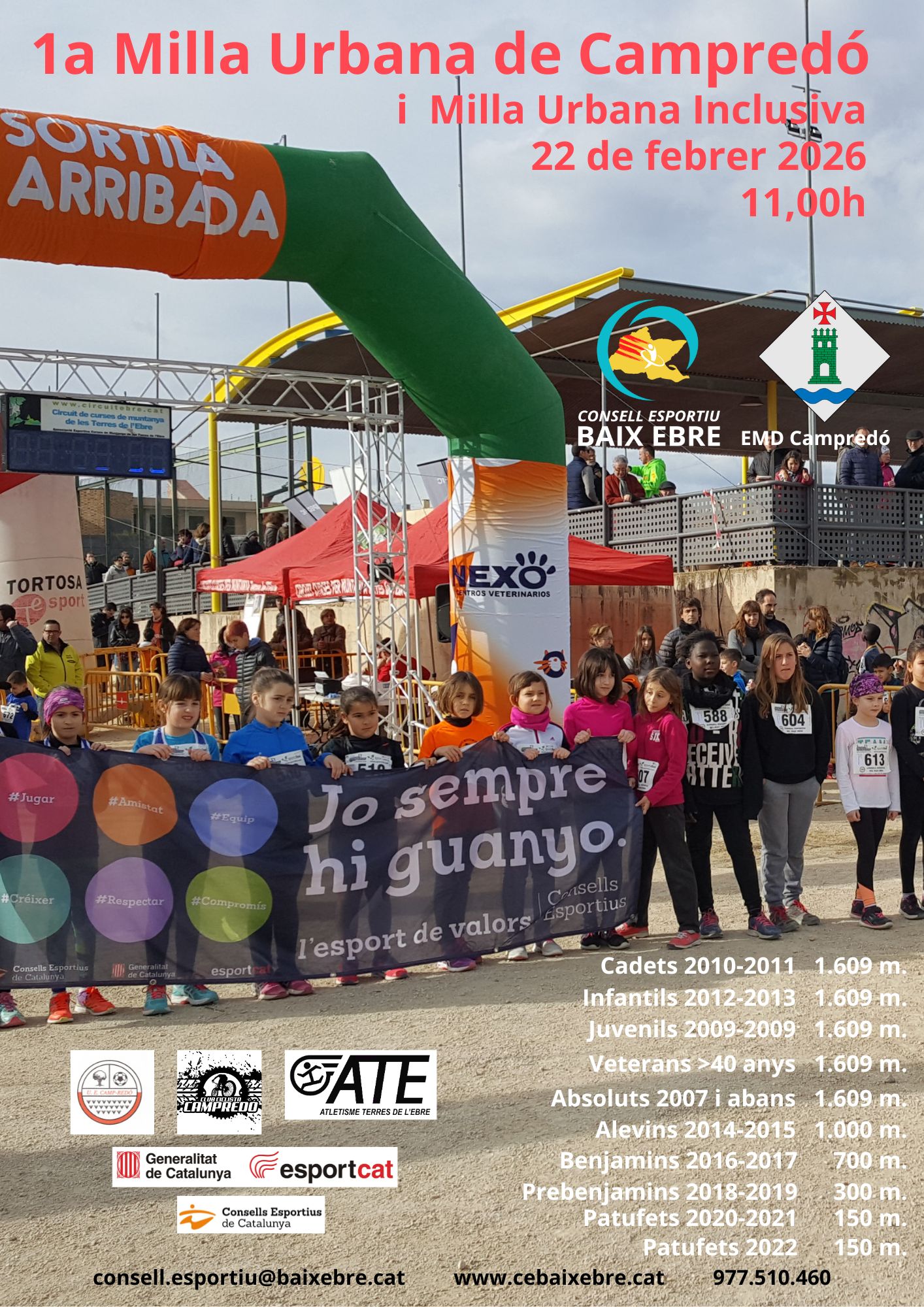 L’EMD de Campredó, juntament amb el Consell Esportiu del Baix Ebre, organitza la 1a Milla Urbana de Campredó, que se celebrarà el dissabte 22 de febrer pels carrers del poble amb inici a partir de les 11 del matí
