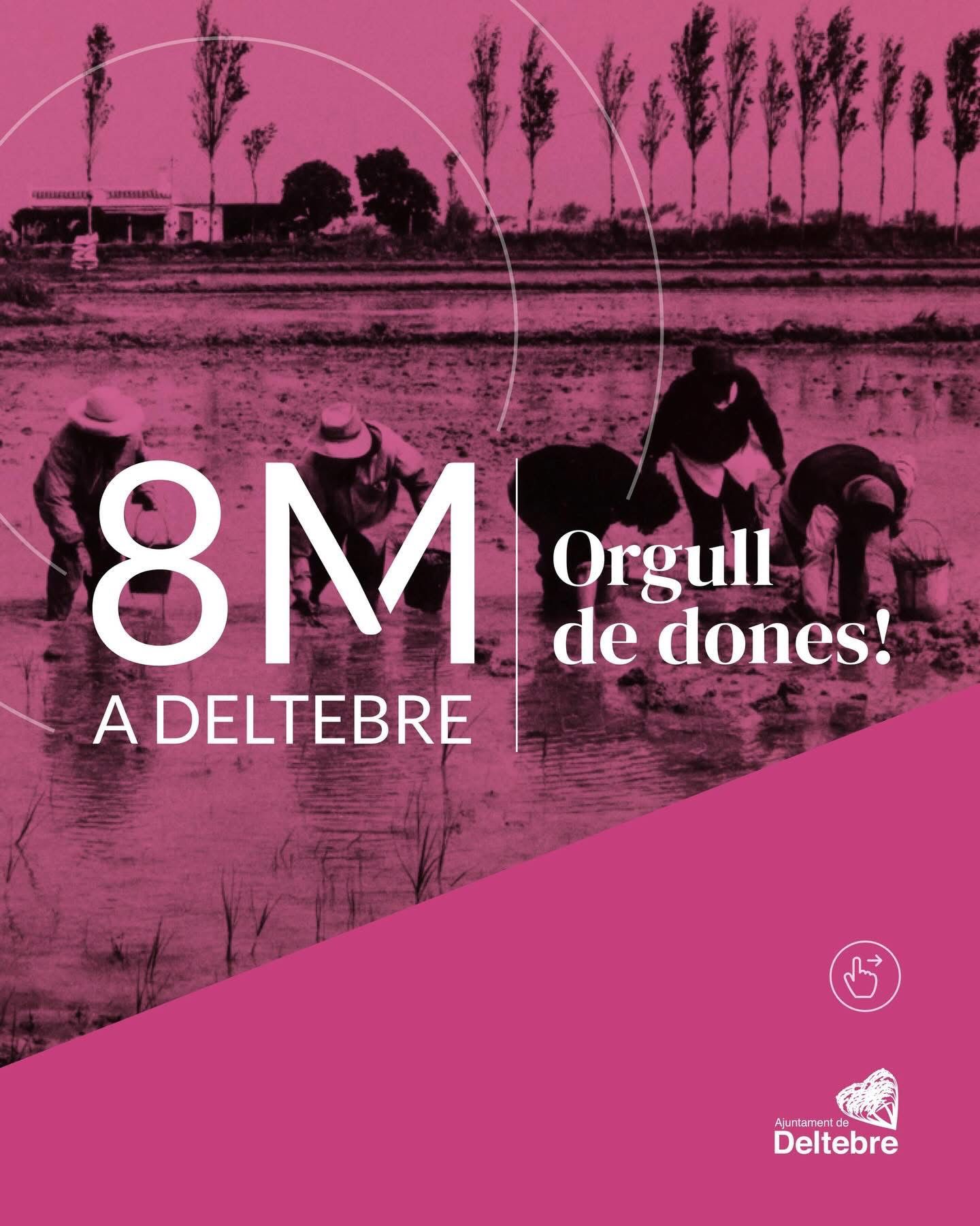 8M: Orgull de dones! Aquest 8 de març reivindiquem el paper imprescindible de les dones. La Cuina de la Memòria, amb Pepeta del Morrudet Dijous 5 de març · 18.30 h · Centre Cultural del Delta La Passió en veu de dona: Aquelles que donen testimoni Divendres 6 de març · 21.30 h · Saló Parroquial de Sant Miquel Acte commemoratiu del Dia de la Dones, amb el concert de Montse Castellà i lectura del manifest Diumenge 8 de març · 18 h · Centre Fluvial del Delta Club de lectura feminista, comentant Casada i callada, d’Emma Zafón Dilluns 9 de març · 18 h · Centre Cultural del Delta