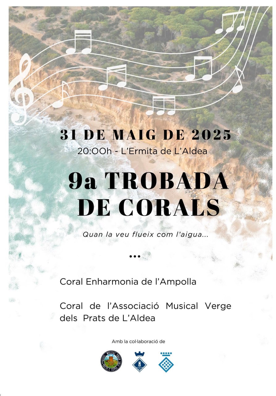 El pròxim 31 de maig de 2025 a les 20:00 h tindrà lloc la 9a Trobada de Corals a l’Ermita de L’Aldea. Amb el lema "Quan la veu flueix com l’aigua...", l'esdeveniment reunirà la Coral Enharmonia de l’Ampolla i la Coral de l’Associació Musical Verge dels Prats de L’Aldea.