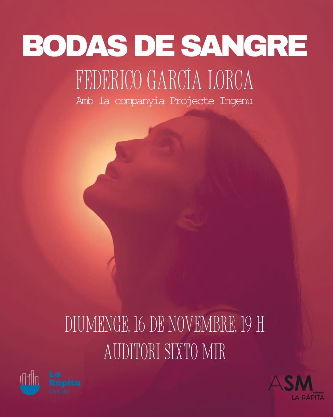 El diumenge 16 de novembre, la companyia Projecte Ingenu porta a la Ràpita una de les obres més emblemàtiques de Federico García Lorca. Un drama intens i poètic sobre l’amor, el desig i el destí, on una núvia decideix fugir amb el seu veritable amor enmig del seu propi casament, desencadenant una tragèdia marcada per la passió i la sang.