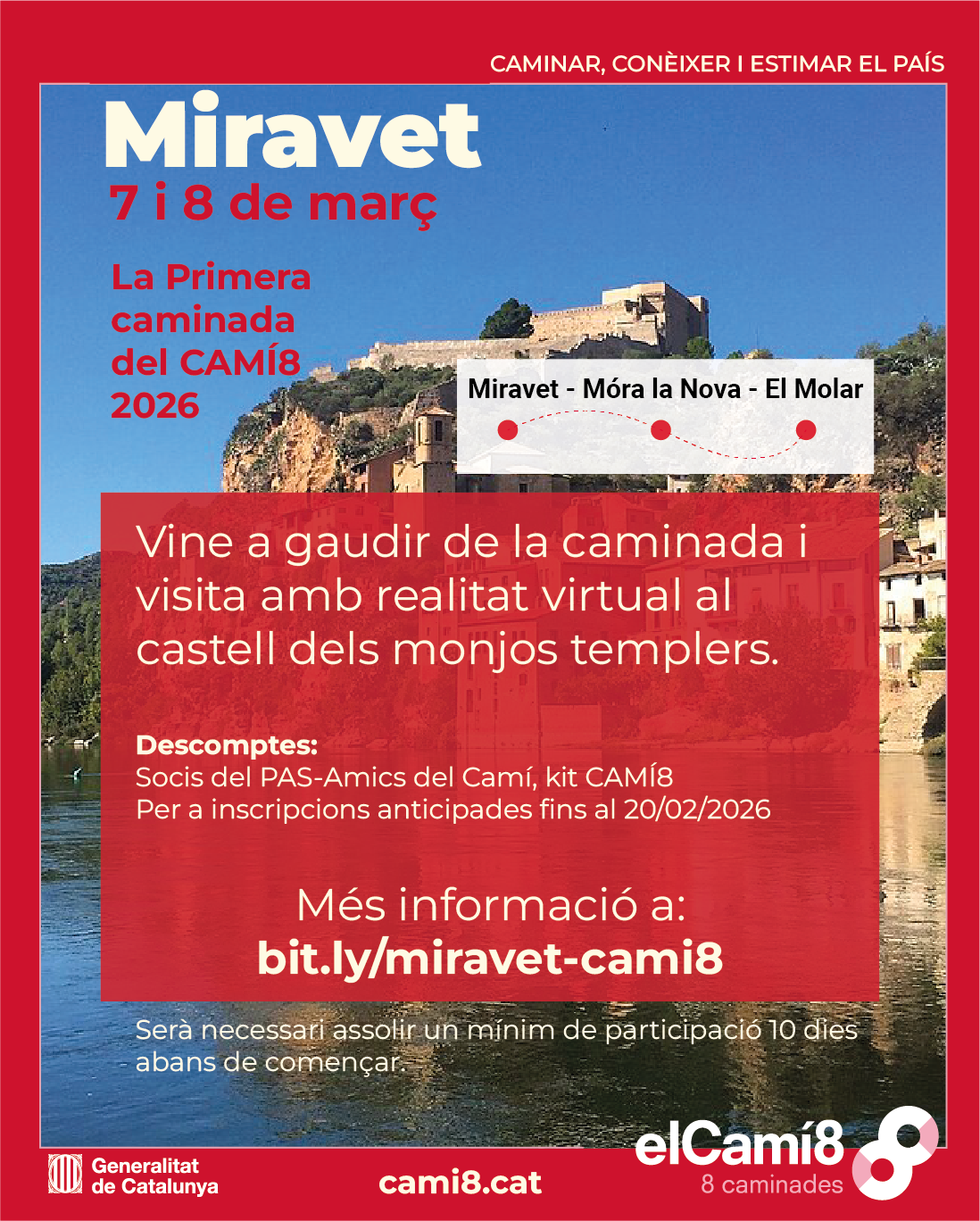 El CAMÍ8 inicia el 2026 amb una caminada guiada a Miravet, una proposta de senderisme cultural que convida a caminar, conèixer i estimar el país. L’itinerari recorre els trams