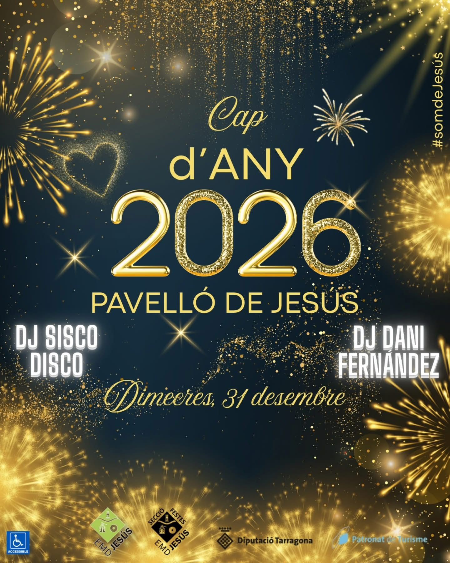 Una nit màgica mereix ser compartida amb la millor companyia! Us esperem al Pavelló de Jesús per rebre el 2026 entre amics, música i bon ambient. No hi falteu! La primera gran festa de l’any comença aquí!