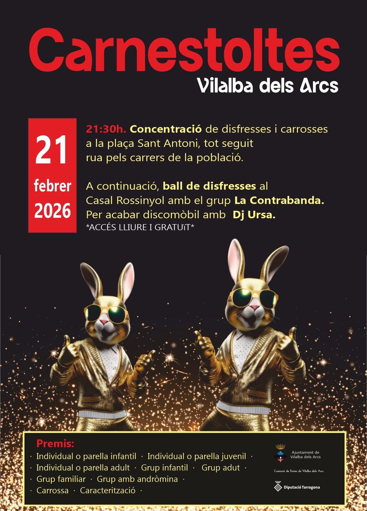 El 21 de febrer arriba el Carnestoltes a Vilalba dels Arcs amb una rua pels carrers de la població, concurs de disfresses i  en acabar ball i discomòbil al Casal Rossinyol. Podeu consultar les bases de la rua i concurs a www.vilalba.cat.