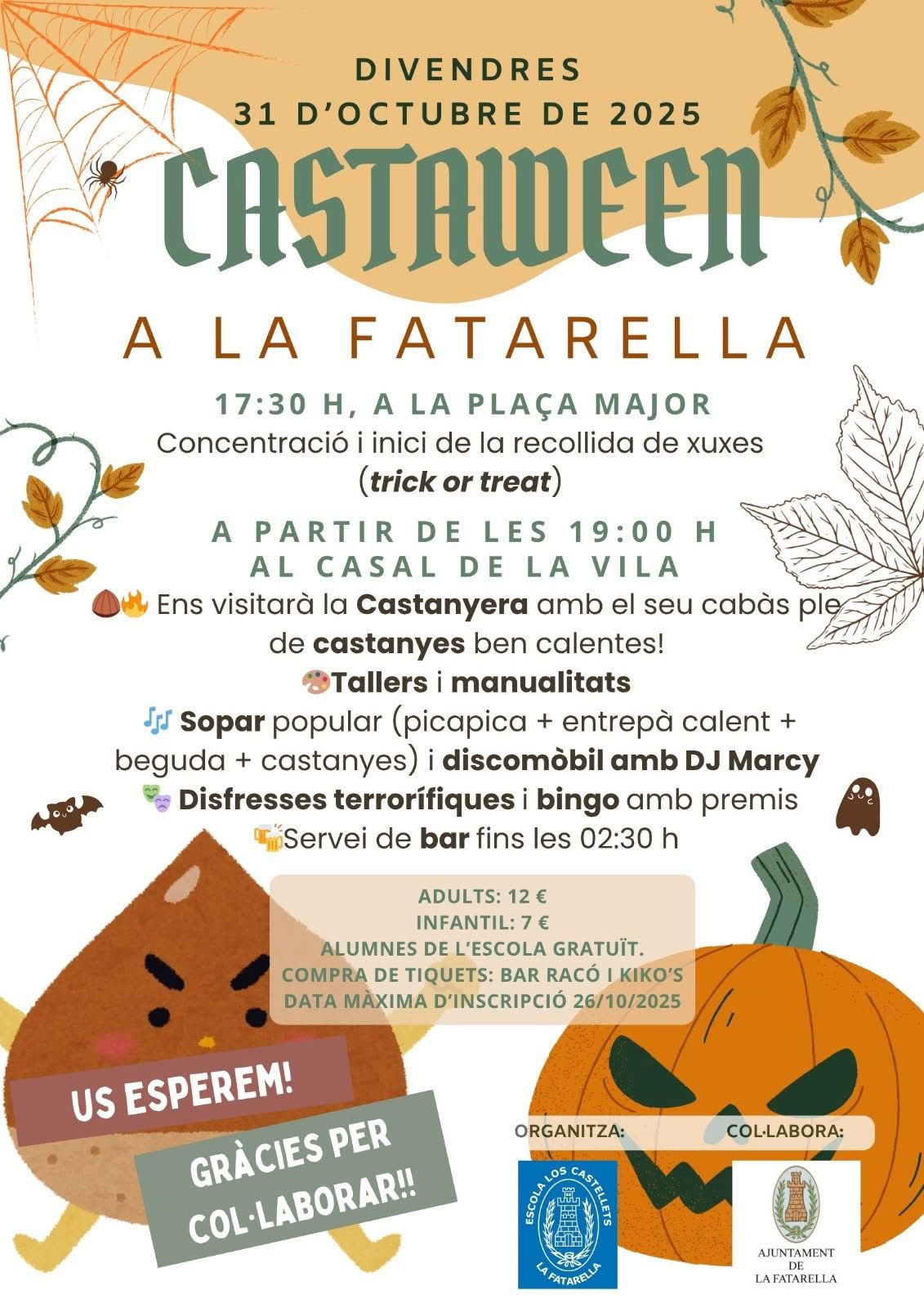 L'Associació Cultural i Esportiva i l'Ajuntament de la Fatarella us informa que tenim a punt la festa més terrorífica i tradicional de la tardor: el CASTAWEEN! Serà el divendres 31 d'octubre de 2025!