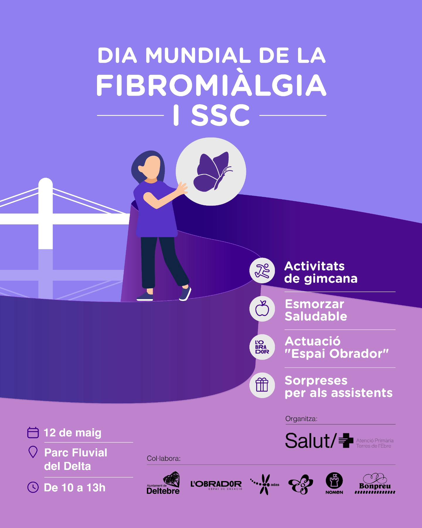 El pròxim dilluns 12 de maig, al Parc Fluvial del Delta, de 10h a 13h, se celebrarà una jornada especial per donar visibilitat i suport a les persones afectades per la fibromiàlgia i les Síndromes de Sensibilització Central (SSC).