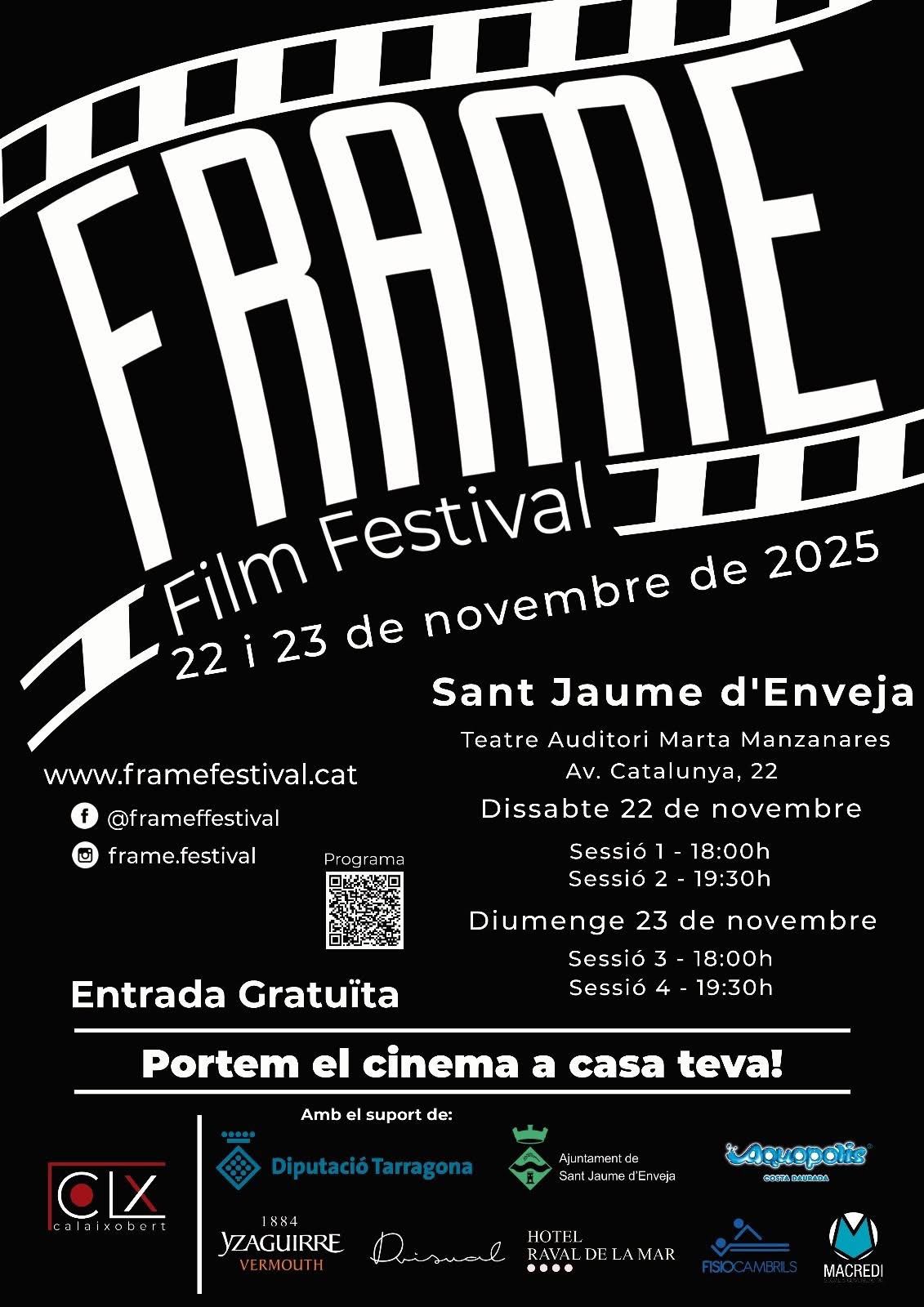 El festival de curtmetratges itinerant FRAME Film Festival arriba els dies 22 i 23 de novembre al Teatre Auditori Marta Manzanares de Sant Jaume d'Enveja! 4 sessions. 20 curtmetratges de gran nivell. No t'ho perdis! El teu vot és molt important! El públic decidiu qui passa a la final dels Premis TALENT FRAME‼ Hi haurà un petit aperitiu i l'entrada és gratuïta!