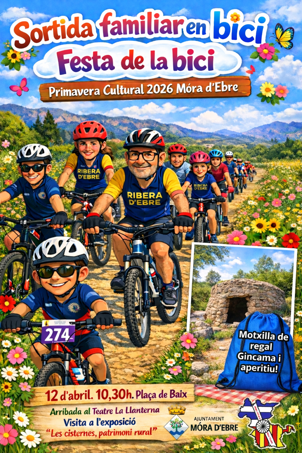 Móra d’Ebre acollirà el pròxim 12 d’abril una sortida familiar en bicicleta en el marc de la Primavera Cultural 2026. L’activitat començarà a les 10.30 h a la Plaça de Baix i està pensada per a totes les edats, amb un recorregut accessible i ambient festiu. La jornada inclourà gimcana, aperitiu i obsequi per als participants, i finalitzarà amb l’arribada al Teatre La Llanterna i la visita a l’exposició “Les cisternes, patrimoni rural”.