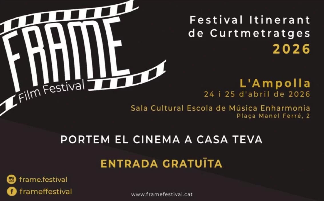 L’Ampolla acollirà el divendres 24 i el dissabte 25 d’abril el FRAME Film Festival, un festival de curtmetratges itinerant, que s’emmarca en la Setmana Cultural 2026 que organitza la Regidoria de Cultura de l’Ajuntament de l’Ampolla.