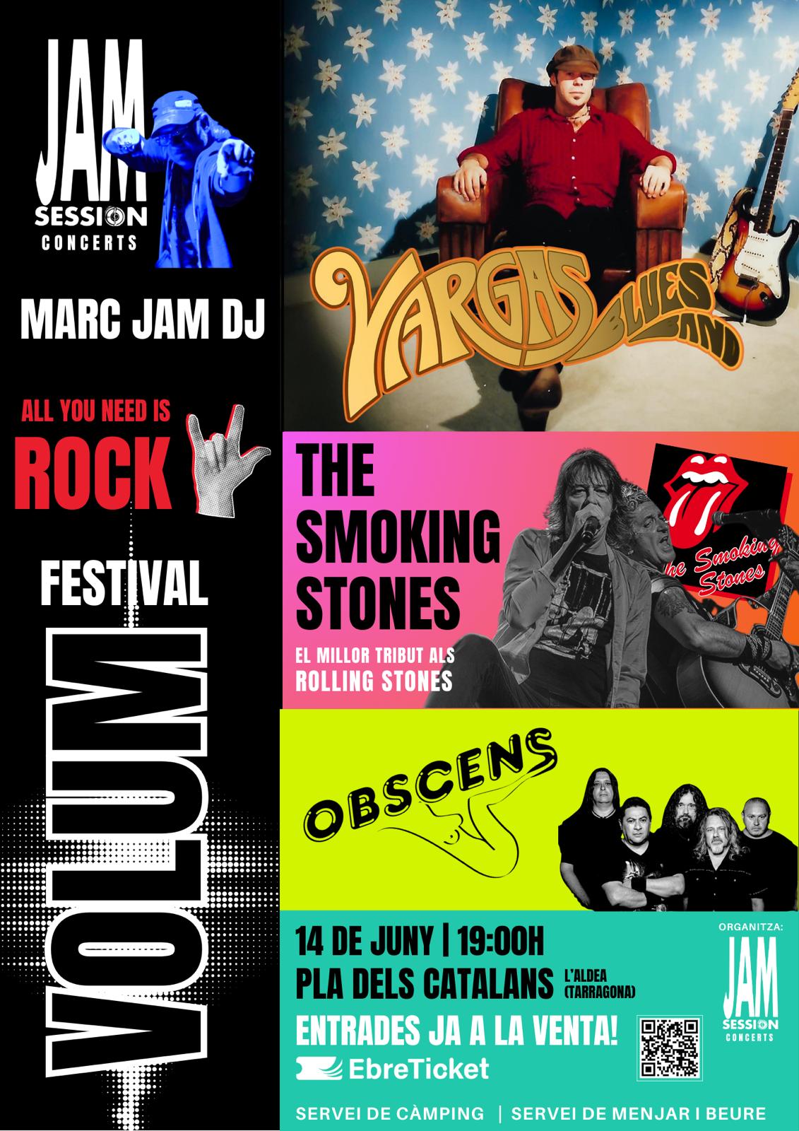 El pròxim 14 de juny a les 19:00 h, el Pla dels Catalans (L’Aldea, Tarragona) acollirà el festival VOLUM, una cita imprescindible per als amants del rock. Amb un cartell de luxe, hi actuaran Vargas Blues Band, The Smoking Stones (tribut als Rolling Stones), Obscens, i el DJ Marc Jam.