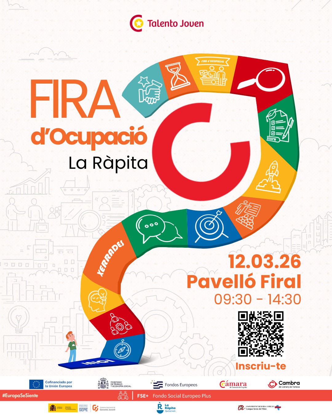 Us convidem a participar en la Fira d’Ocupació que tindrà lloc el 12 de març de 2026, de 09:30h a 14:30h, al Pavelló Firal de La Rapita.