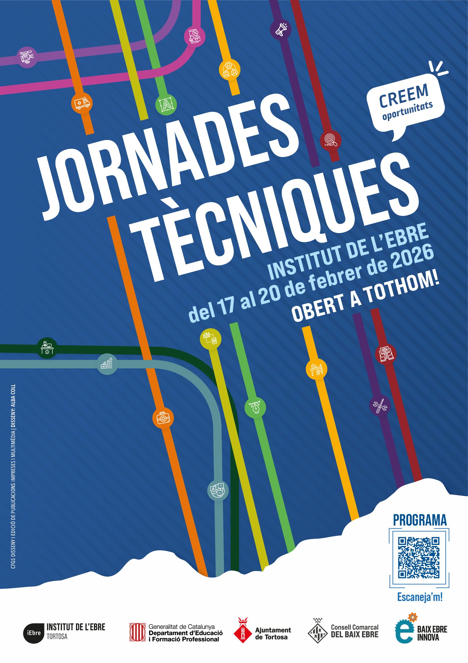 L’Institut de l’Ebre celebrarà les Jornades Tècniques del 17 al 20 de febrer de 2026, una iniciativa oberta a tothom que vol posar en valor la formació professional i crear noves oportunitats.