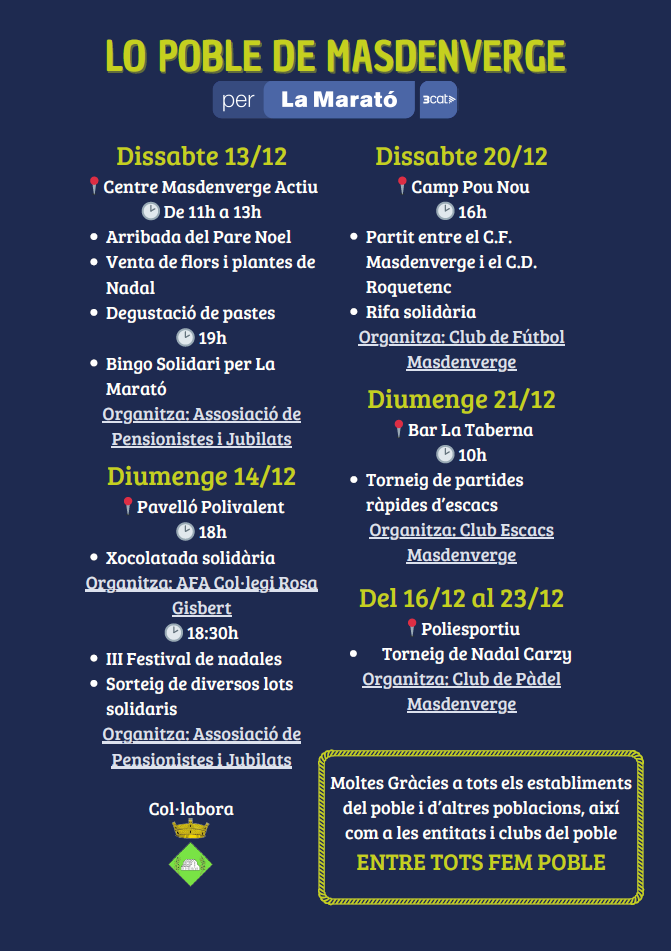 Masdenverge es bolca amb la solidaritat durant el desembre organitzant una setmana i mitja plena d'activitats per recaptar fons per La Marató de 3Cat.