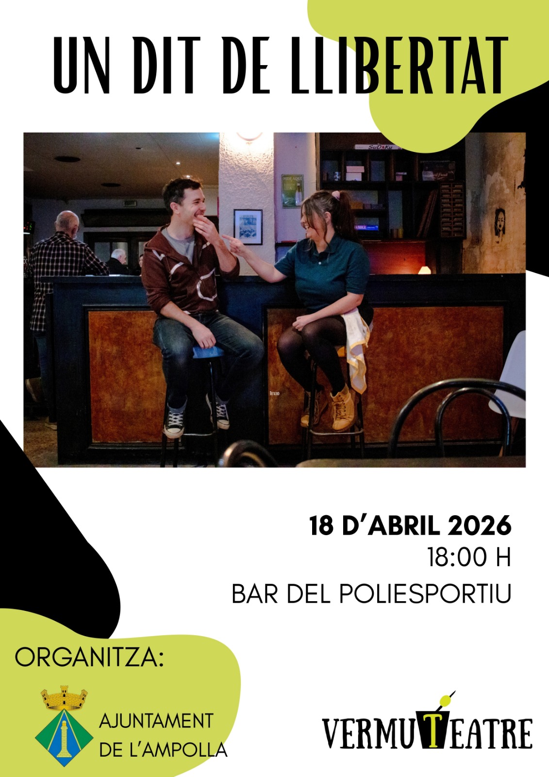El pròxim 18 d’abril de 2026 a les 18:00 h, el Bar del Poliesportiu acollirà l’espectacle “Un dit de llibertat”, una proposta teatral que combina humor i reflexió.