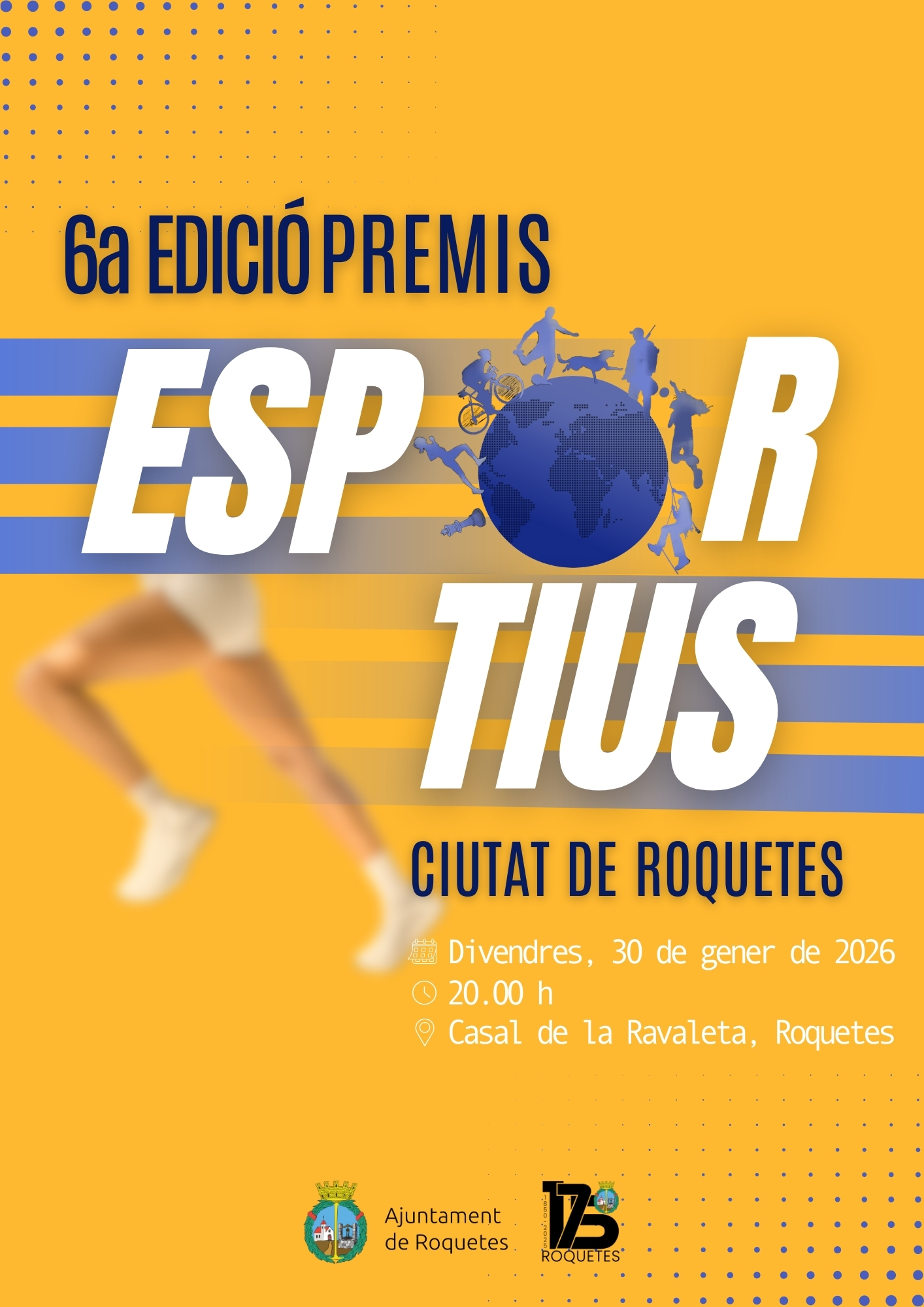 Una gala molt esperada, per reconèixer l’esforç, dedicació i constància de tot un any. La sisena edició dels Premis Esportius Ciutat de Roquetes se celebrarà el proper divendres 30 de gener, a partir de les 20.00 hores al Casal de la Ravaleta. L’acte, organitzat per l’Àrea d’Esports de l’Ajuntament de Roquetes, serà retransmès en directe per Canal TE i el canal de YouTube d’Antena Caro, i guardonarà els millors esportistes del municipi de 2025, a proposta dels diferents clubs, entitats i associacions esportives locals.