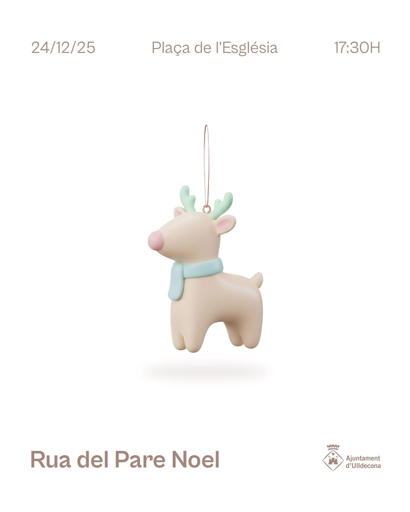 El dimarts 24 de desembre el Pare Noel arribarà carregat d'il·lusió! La Rua començarà al Lúdik a les 17:30h i el recorregut serà el següent: C/Vicent Aubà➡ C/Miquel Querol ➡ C/Major ➡ Plaça de l’Església A més, hi haurà una xocolatada per a tots els assistents i una actuació de dansa a càrrec de l'Escola Dansing. Vos esperem a tothom!