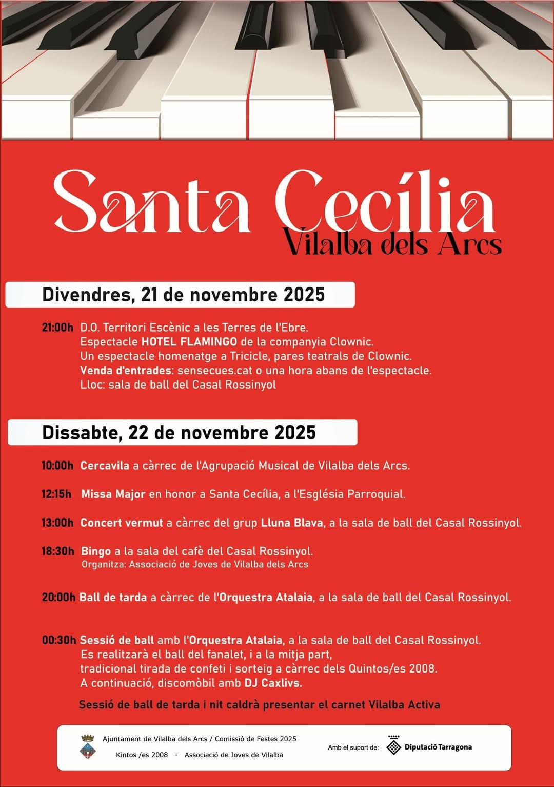 Vilalba dels Arcs viurà el cap de setmana del 21 i 22 de novembre de 2025 la tradicional festa de Santa Cecília, patrona dels músics.