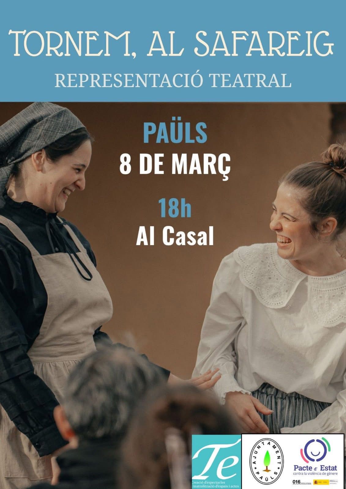 Diumenge 8 de març, a les 18.00 h – Teatre al Casal Representació de l’obra Tornem, al safareig. Us hi esperem