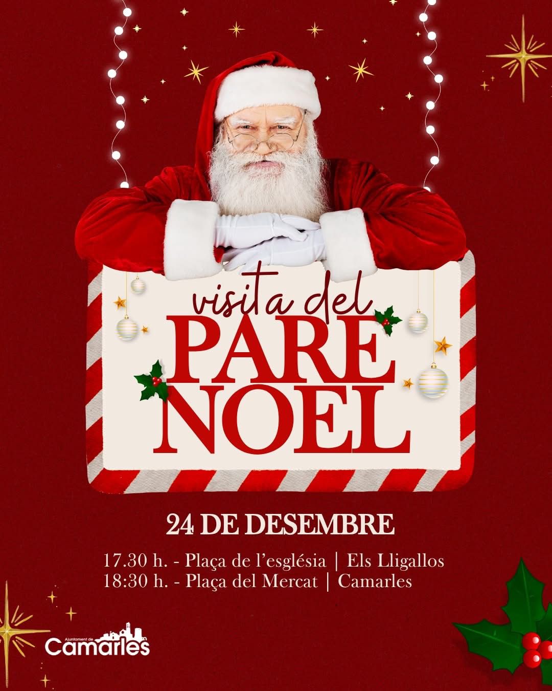 24des18:0019:30Visita del Pare Noel a Sant Jaume d’Enveja18:00 - 19:30 Població:Sant Jaume d'Enveja