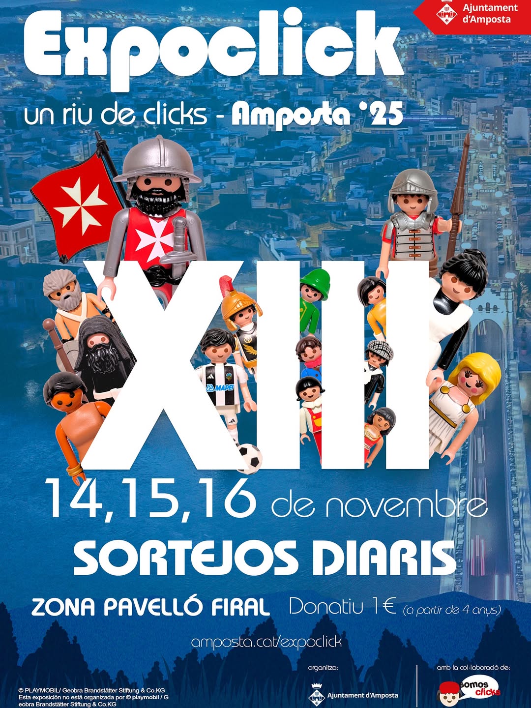 Amposta es prepara per acollir, del 14 al 16 de novembre de 2025, una nova edició de l’esperat Expoclick, la gran trobada per als amants dels Playmobil. L’esdeveniment tindrà lloc a la Zona Pavelló Firal d’Amposta i comptarà amb un donatiu simbòlic d’1 € per accedir-hi.
