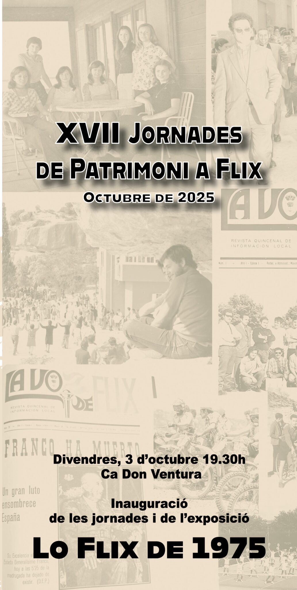 Les XVII Jornades de Patrimoni 2025, organitzades per l’Associació La Cana, se celebraran a Flix amb un programa dedicat als anys propers a 1975, una etapa de canvis i noves il·lusions marcada pel final del franquisme.