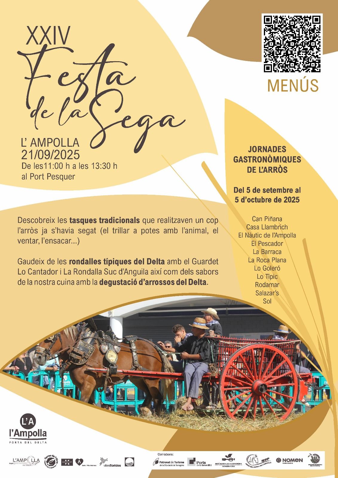 21set11:0013:30XXIV Festa de la Sega a l’Ampolla11:00 - 13:30 Població:Ampolla