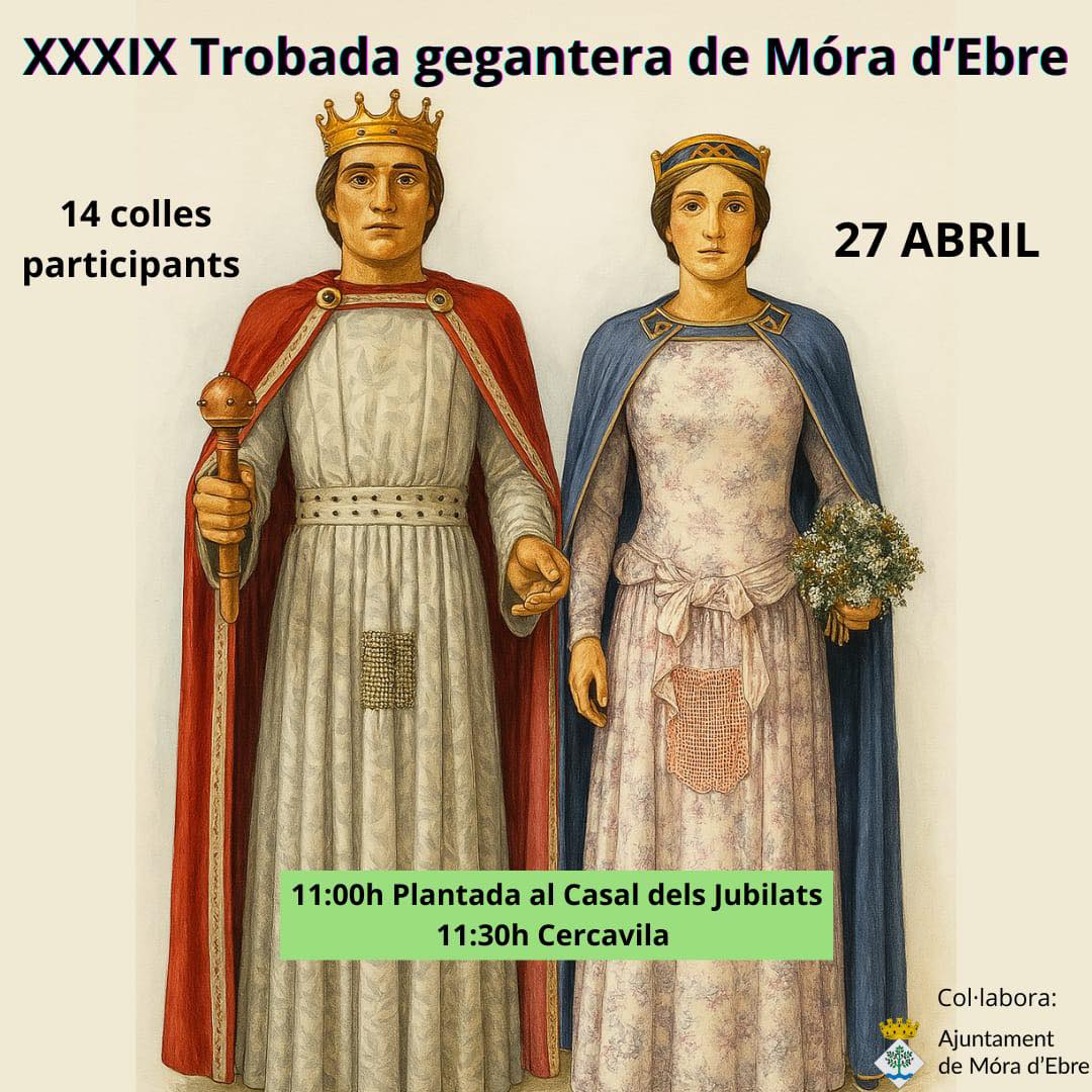 27abr11:0013:00XXXIX Trobada Gegantera de Móra d’Ebre11:00 - 13:00 Població:Mora d'Ebre
